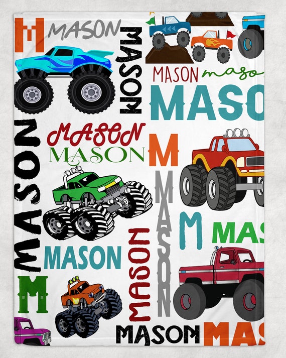 Personalized Monster Trucks Monster Trucks Name Blanket Etsy